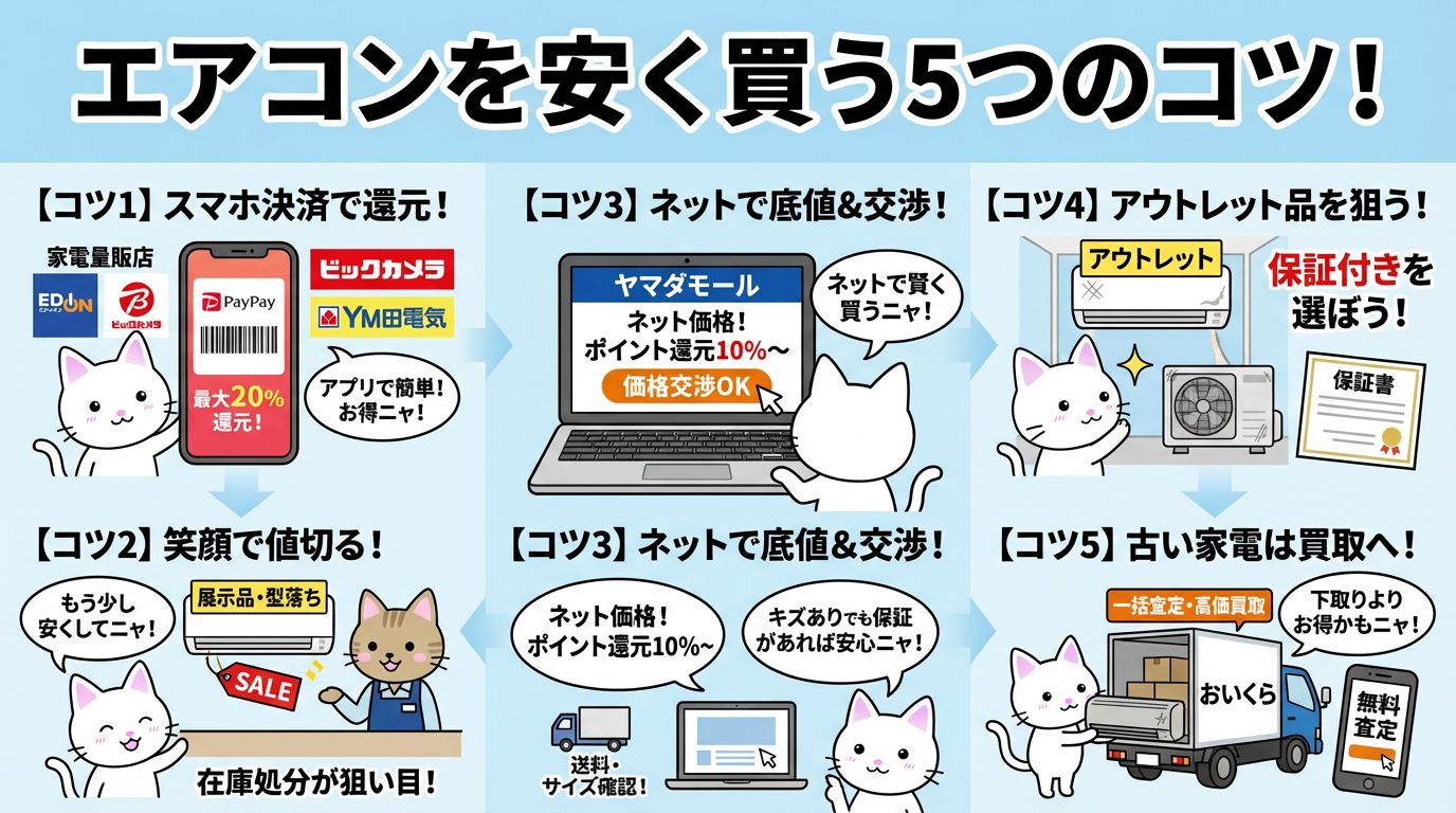 エアコンをお得に購入するための方法を、さらに詳しくご紹介します。