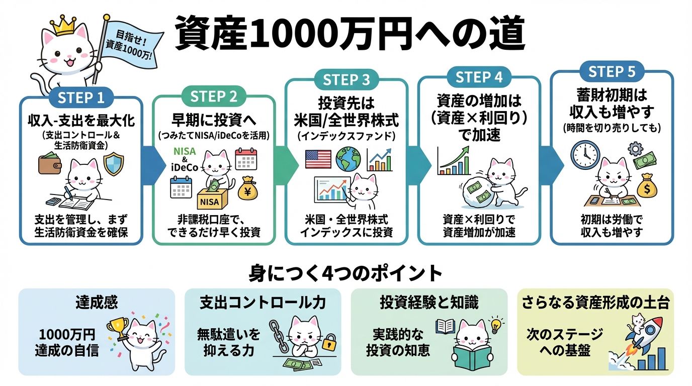 - 1,000万円貯める過程で手に入る、重要な4つのポイント