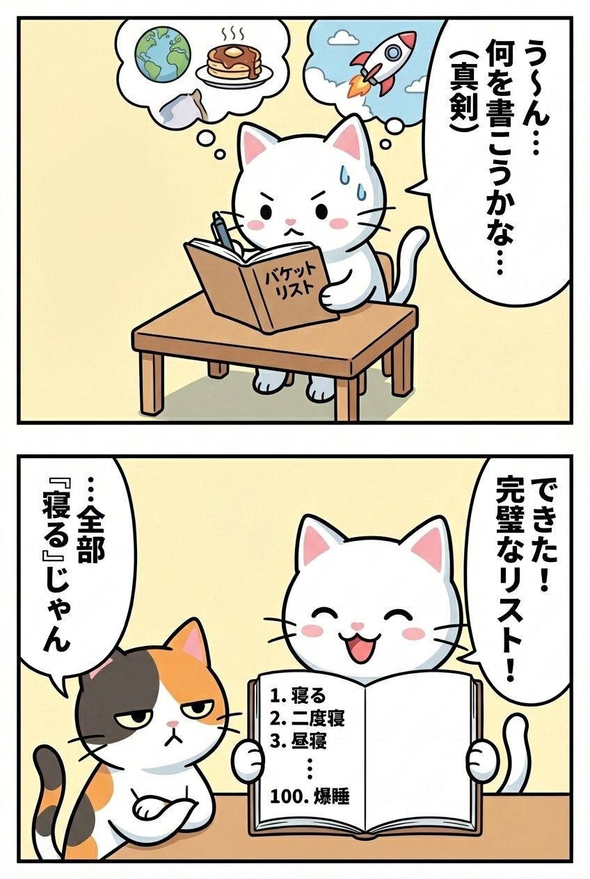 例えばバケットリストに次の2つのやりたいことが書かれているとします。