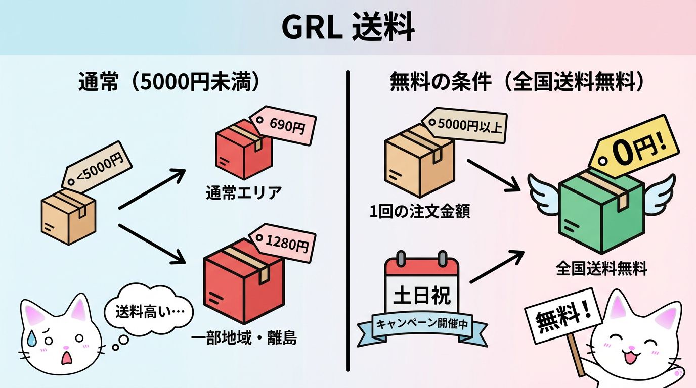 GRLグレイルの送料無料はいつ?⇒土日祝。それ以外は5000円以上購入が必要。
