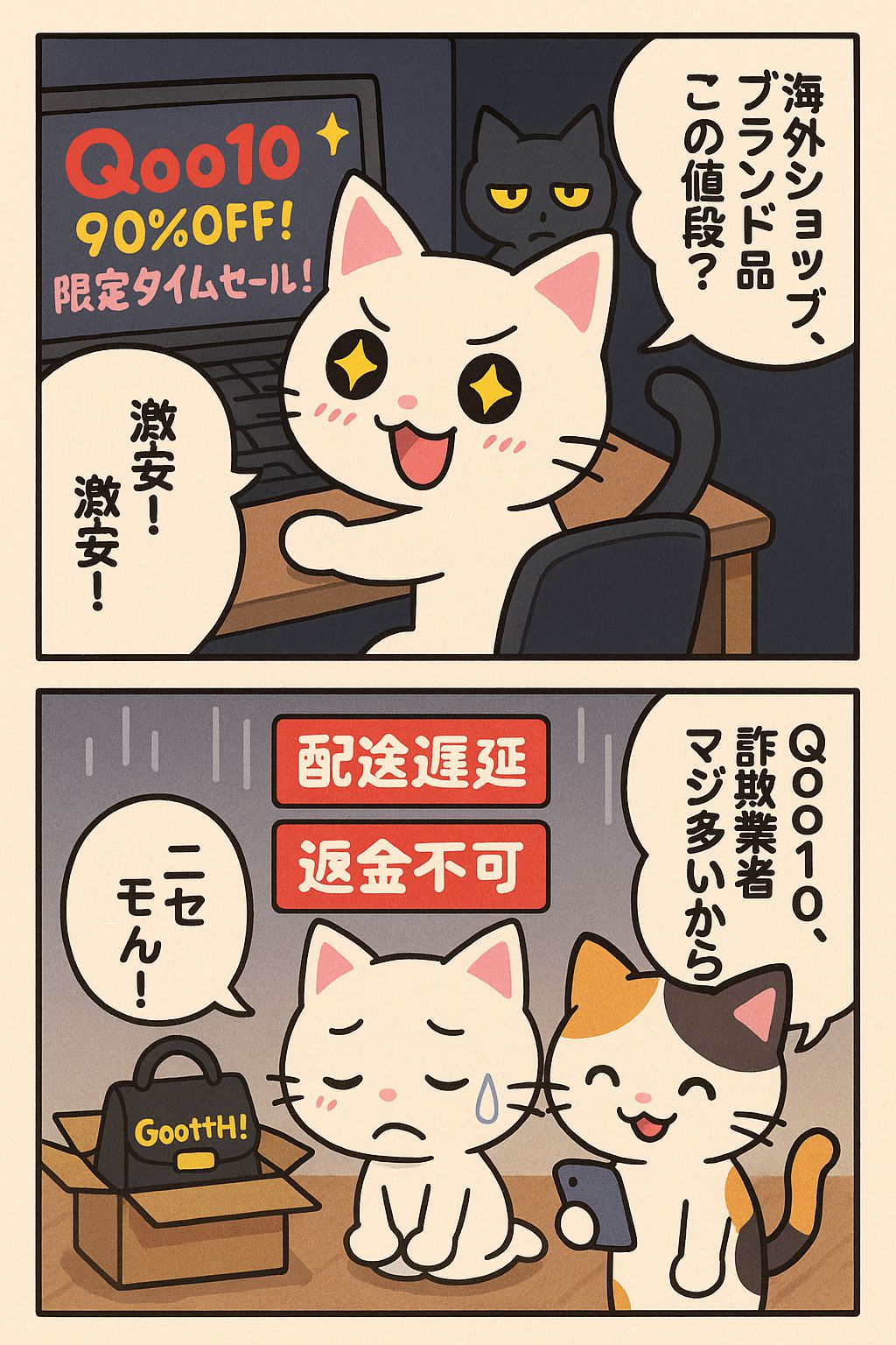 これはQoo10に限った話ではなく、Amazonでも詐欺業者はたくさんいますからね。