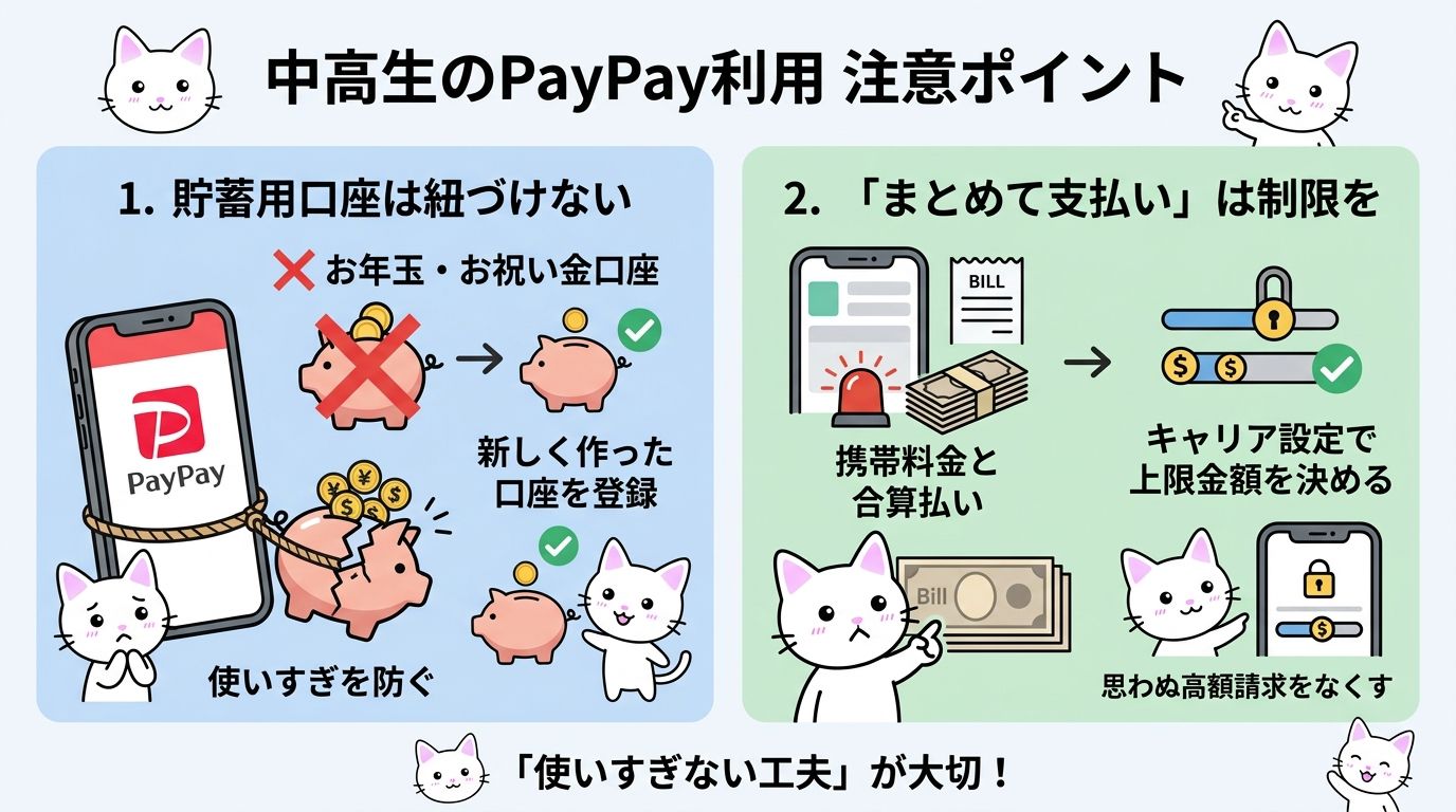 中学生や高校生がPayPayを使う際には特に注意すべきことが2つあります。