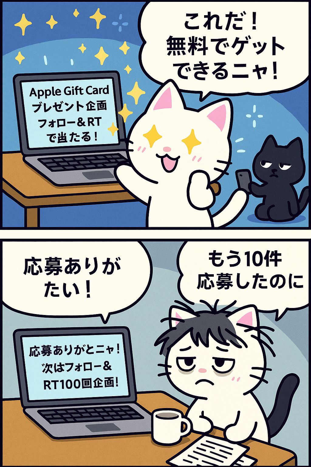 Apple Gift Card(iTunesカード)を無料入手するもう1つの方法は、TwitterなどのSNSで開催されているプレゼント企画に参加することです。