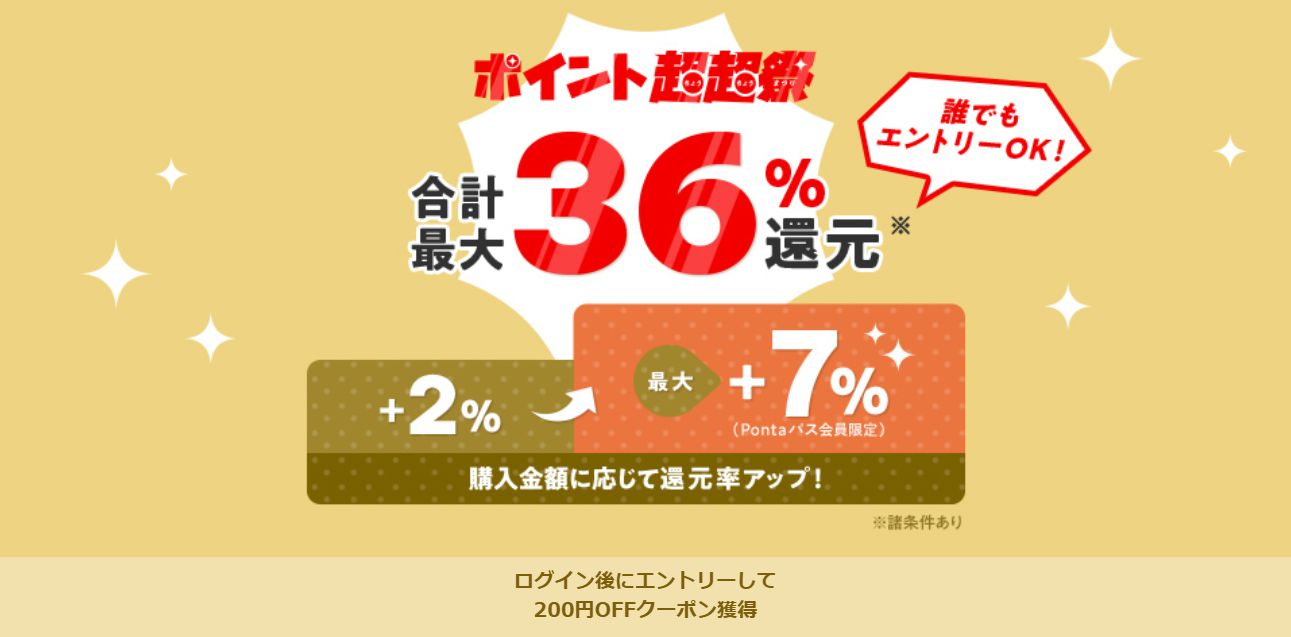 「ポイント超超祭」では、あなたのお買い物金額に対して最大36%ものポイントが還元されるチャンスです。