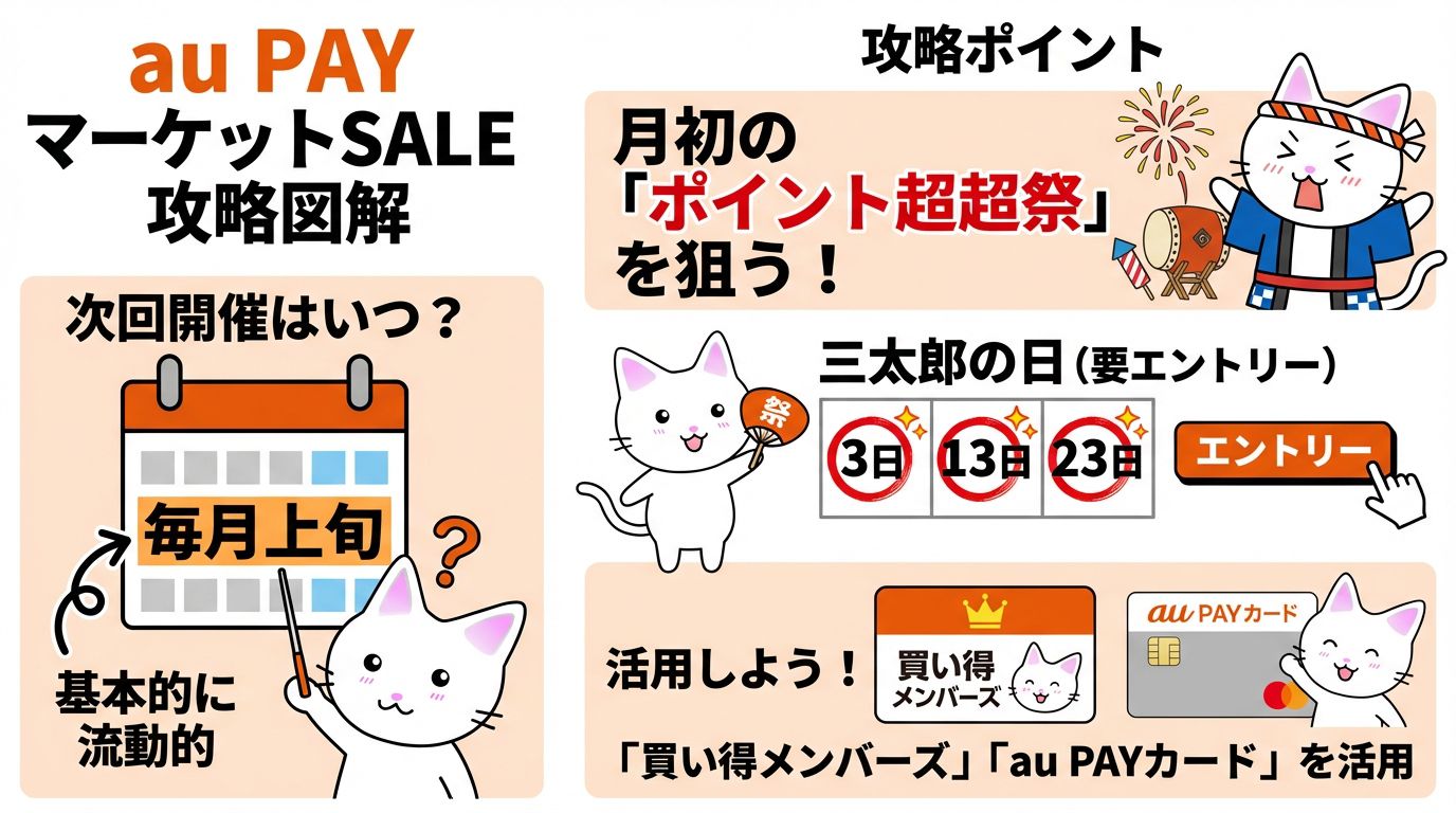 ●2026年2月 au PAY マーケット最新セール情報。「ポイント超超祭」「三太郎の日」はいつ?おすすめ攻略方法まとめ。
