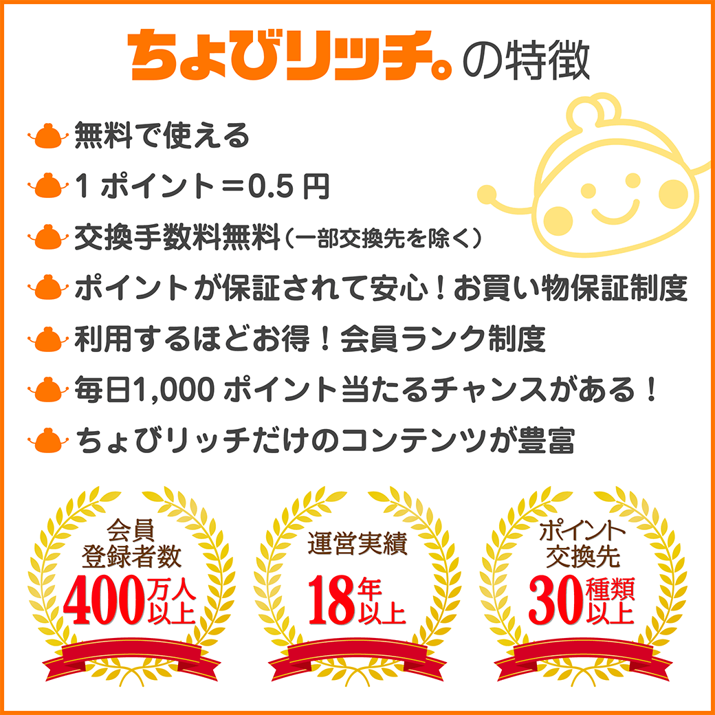 ※当ブログは【ちょびリッチ公式アンバサダー】です。当ブログ読者の方は是非オトクな紹介URLをご利用ください!