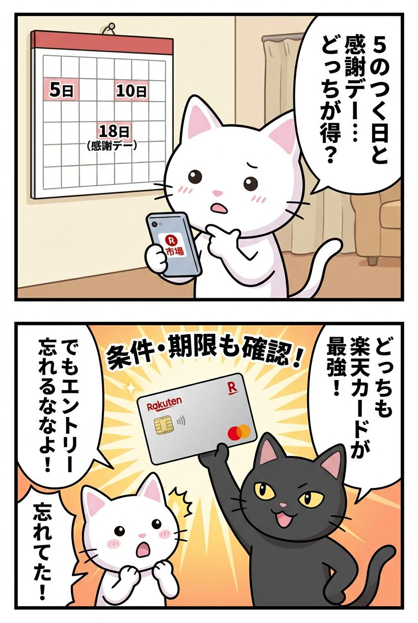 キャンペーンの特徴を理解し、自分の購入スタイルに合わせて最適な日を選ぶことが、楽天市場で賢く得するための最大のコツです。上手にタイミングを見極めて、お得なショッピングを楽しみましょう。