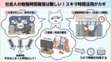 えっ?社会人だけど学習してないだって??いい大人が恥ずかしくないの???たま勉強?やらないよ!しんどいし時間がない!こんな悩みを解決します。忙しい社会人にとって、まとまった勉強時間を確保するのはむずかしいですよね。せっかく時間が出来ても仕事...