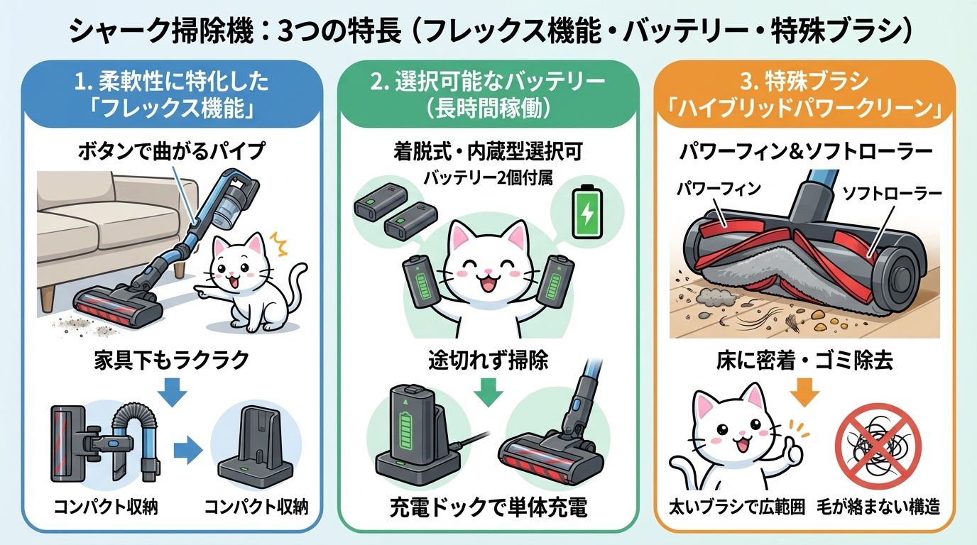 これらの機能がシャーク掃除機を他のメーカーと差別化し、高評価を受ける理由になっています。