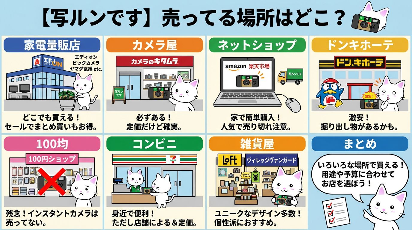 これらの場所をチェックすれば、「写ルンです」を見つけることができるはず。
