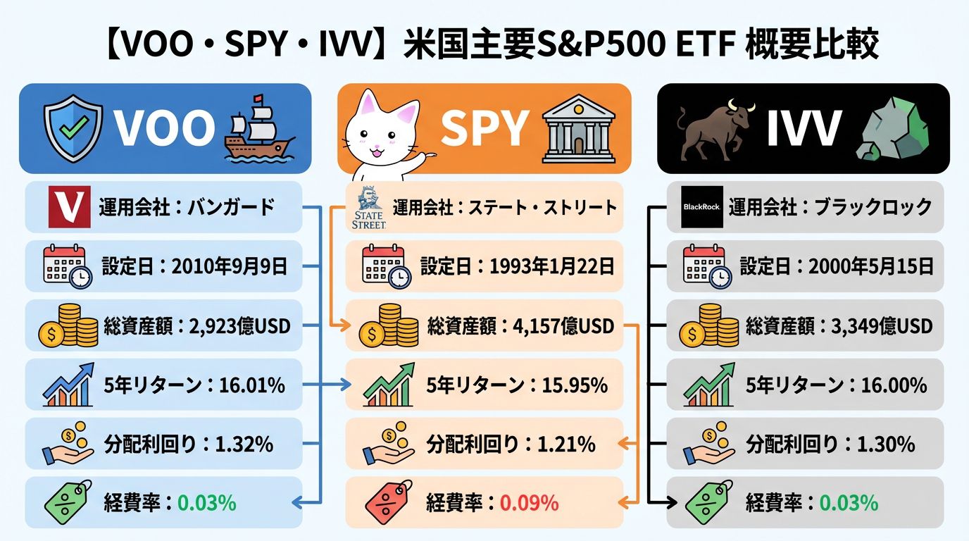 【VOO・SPY・IVV】の概要比較