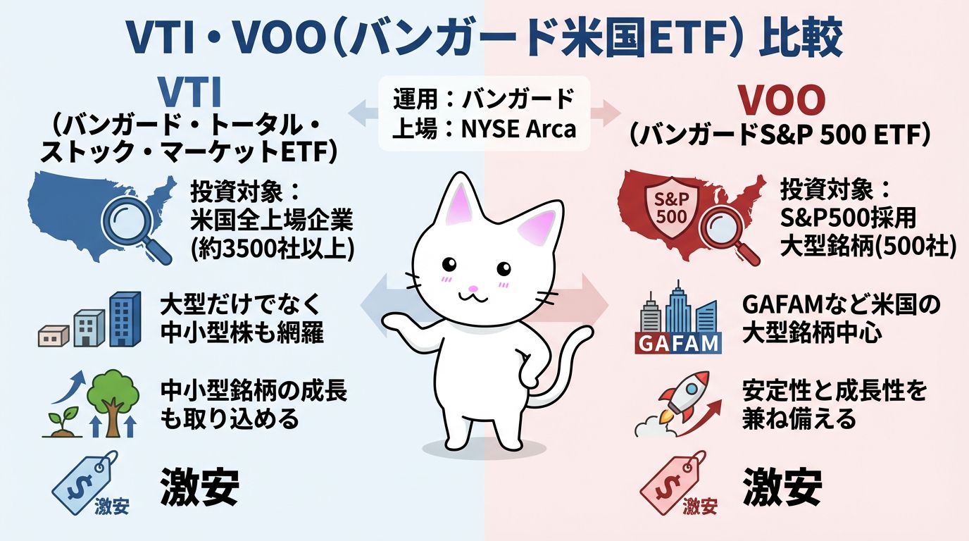 この記事では、2026年時点の最新データを交えながら、VTIとVOOの違い・選び方・私がVTIを選んでいる理由を解説していきます。
